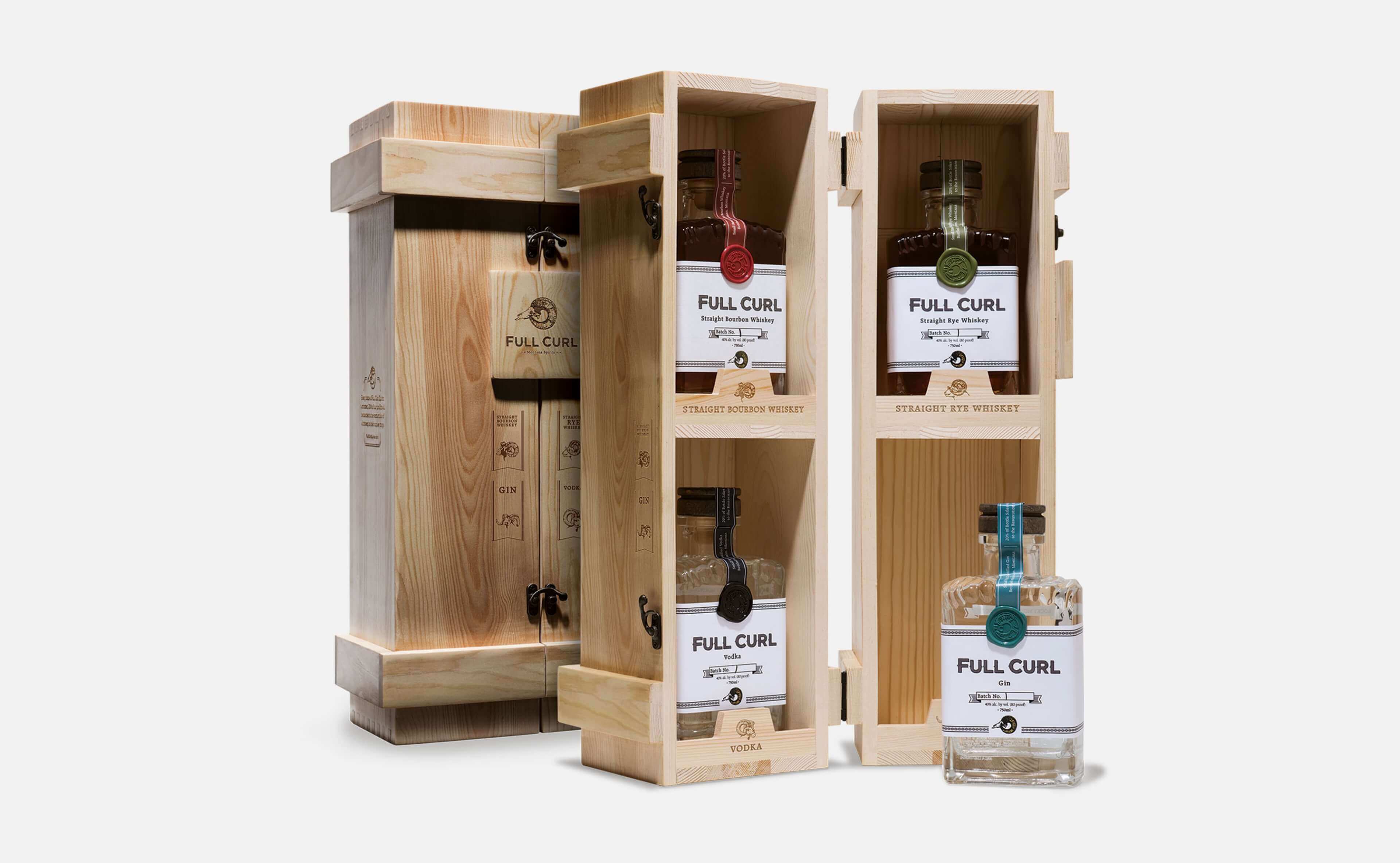 Born out of the founder's deep love of bighorn sheep and commitment to conservation, Full Curl Spirits is a micro-distillery producing bourbon, rye, gin, and vodka for discriminating palates and conservation-minded consumers. Each sale directly benefits the Wild Sheep Foundation's conservation work, making every purchaser a partner in those selfsame efforts. The direct-to-consumer model not only required label designs for the suite of spirits, but a protective shipping concept that was equally distinctive. Massive proposed an identity that mirrored the founder's passionate ethos, while showcasing the boutique brand's handcrafted offerings with exquisite illustrations, masculine touches, and uniquely collectible packaging.