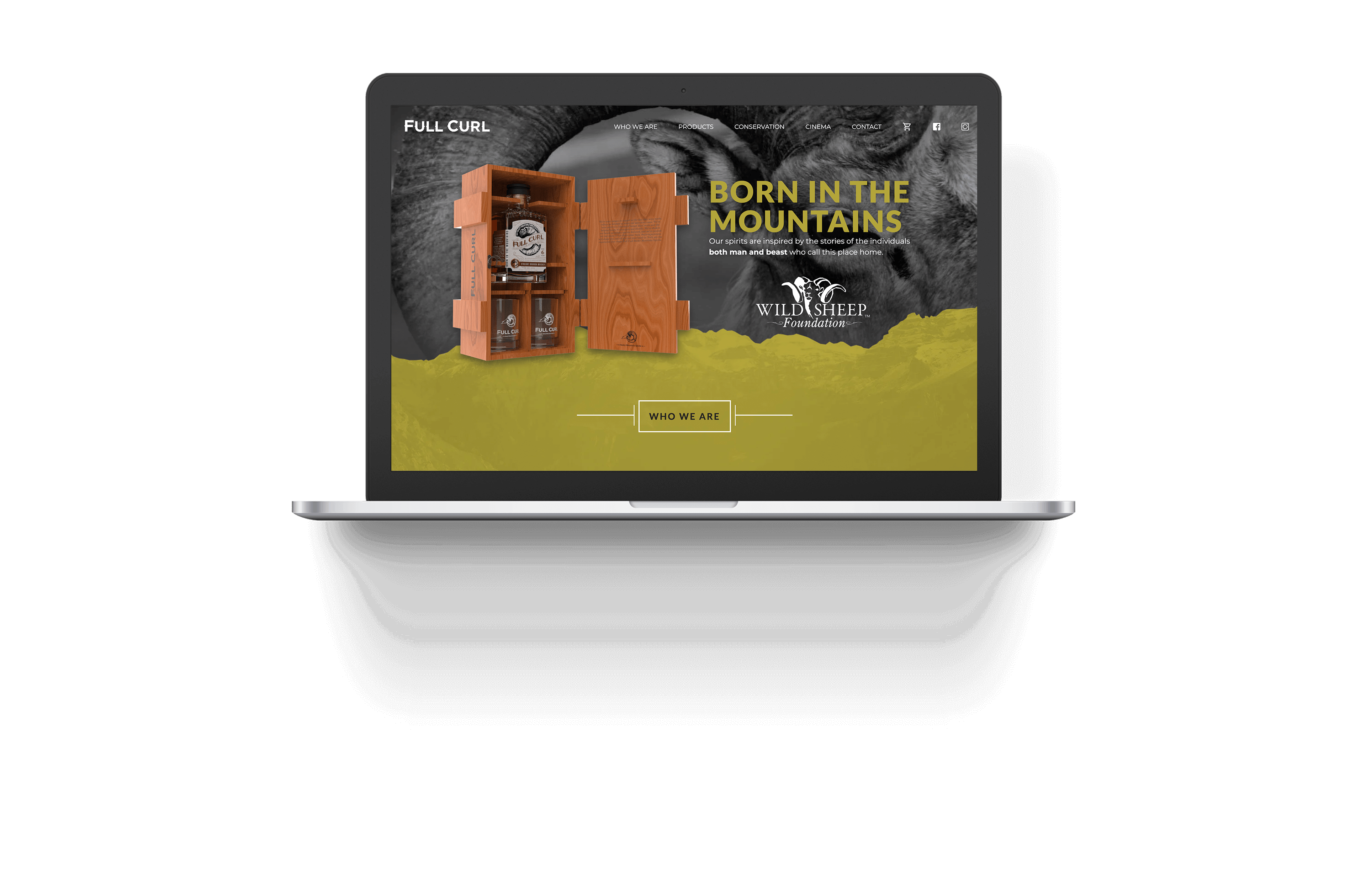 Inspiring stewardship with every sip, Full Curl Spirits is the convergence of consumption and conservation in a niche market few knew existed, and fewer still inhabit. For hunters, most specifically the bighorn-sheep variety, Full Curl marries a warming reprieve from a blustery day in the wild with the Wild Sheep Foundation's ongoing work to keep it so. Massive embraced the unique conscientious-hunter market and the challenges it entailed, curating a distinctive man's man of a brand.